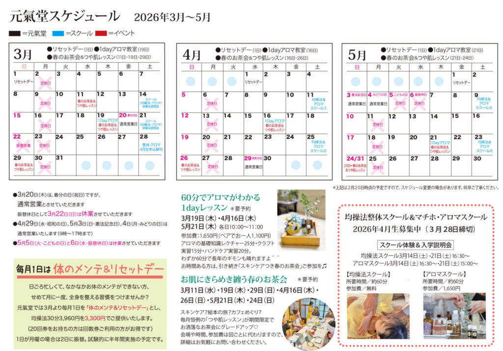 元氣堂3月〜5月カレンダー